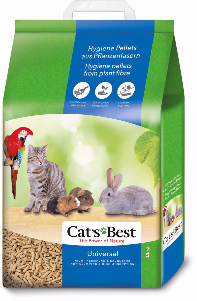 Pellets higiênicos feitos 100% a partir de fibra de vegetais. Leito absorvente natural de fibra de planta, universalmente aceite para todos os pequenos animais domésticos, virtualmente – especialmente nas casas onde coexistem diferentes tipos de animais.