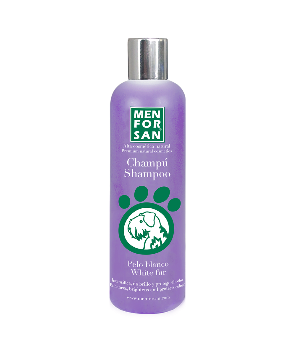 Shampoo de máxima qualidade para cães com extratos naturais intensificadores da cor branco e tons claros (Caniche, West Highland terrier, Sky Terrier).